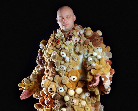 The ‘bearscoat’ is specially made by Fleur for her lover. All the bears are second hand bears.