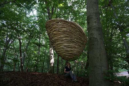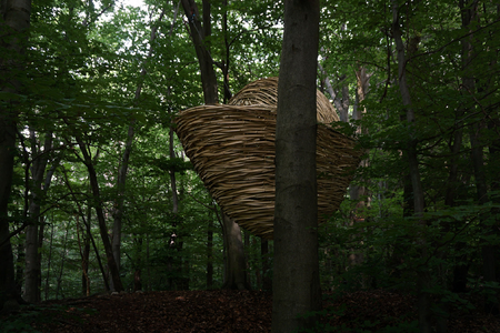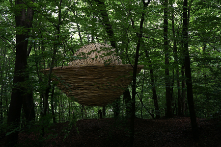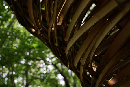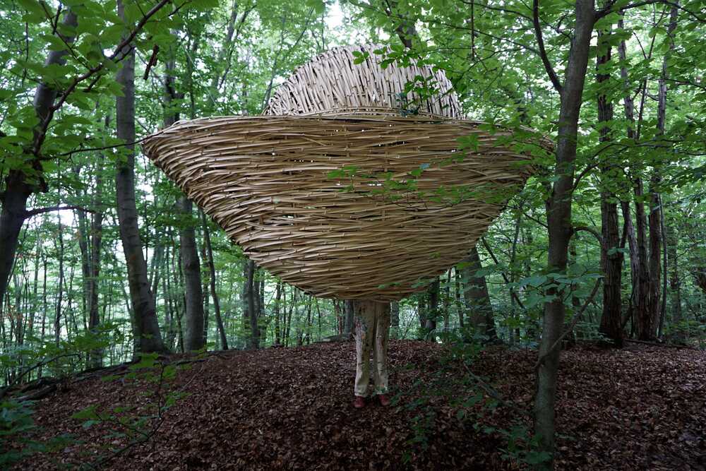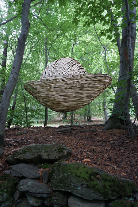 The bamboo sculpture is inspired by the shape of the Chinese goldnugget, a symbol for wealth and prosperity. Here in the forest of Capriasca wealth can be experienced in an unworldly manner. It's not about money obviously, but the availability of clean air, a forest floor, trees, leaves. It is about life.