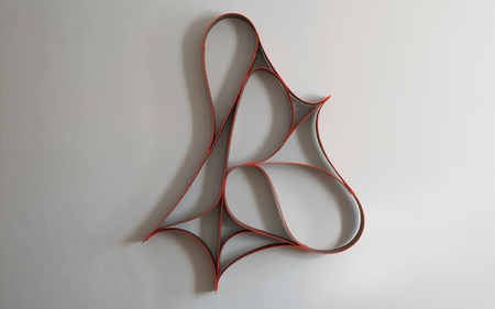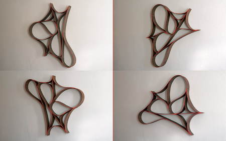 ES steht für „Empfindliche Strukturen”. Bei diesem Thema steht die Struktur im Vordergrund aus der eine Form entsteht. Hängt man diese Skulpturen verschieden herum auf, so entsteht der Eindruck immer wieder vor einem neuen Objekt zu stehen.