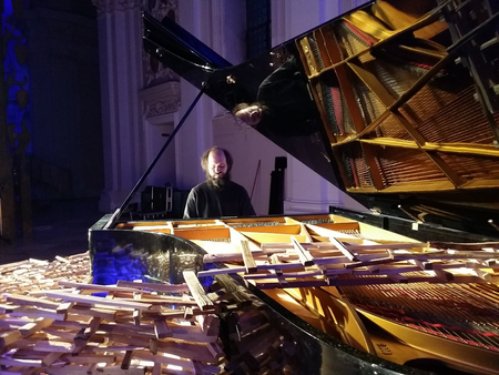 It was a 4-hour performative installation with Johannes Billich on piano and Gunnar Tippmann / light. Recorded and broadcast live from the Egidienkirche.