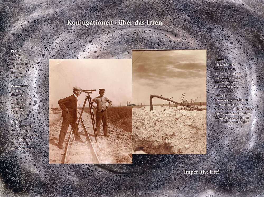 "Ich konjugiere das âIrren' durch alle Personen und FĂ€lle, im Indikativ, im Konjunktiv, als Imperativ und als Interrogation. Bei dieser linguistischen Vorstudie ist mir noch klarer geworden, dass nicht nur ich, sondern auch du, er/sie/es, wir, ihr, sie, dass alle irren, geirrt haben, irren werden."