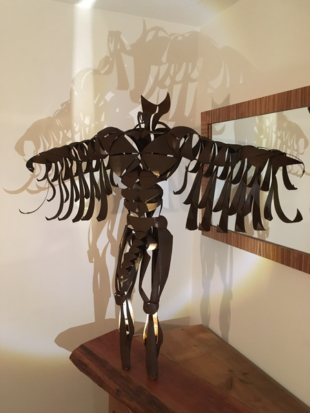 Dreiecke aus Stahlblech mit Hammer auf Amboss geformt und zur Figur verschweißt.
