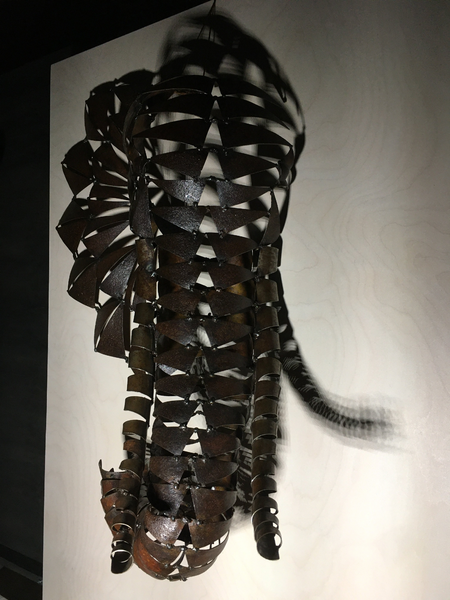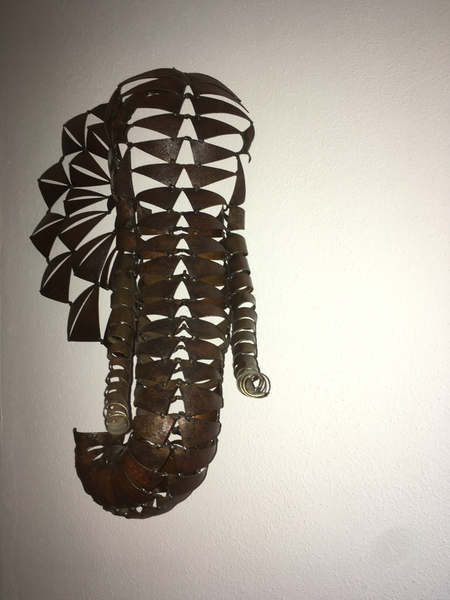 Iron triangle formed on anvil - welded to sculpture - rusted and oiled