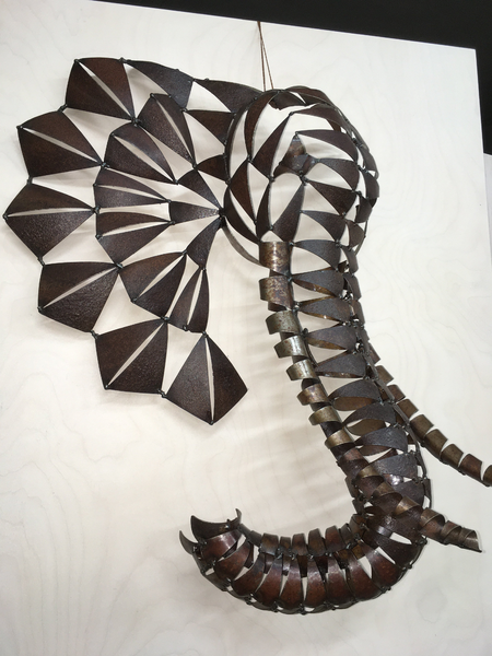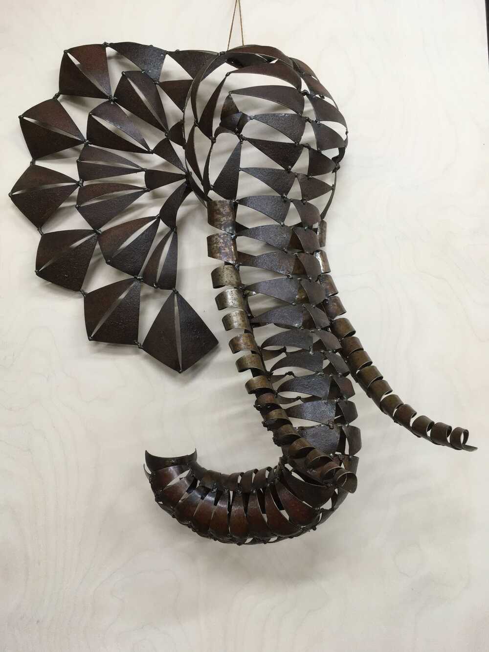 Auf Amboss getriebene Eisendreiecke verschweißt, gerostet und geölt.
