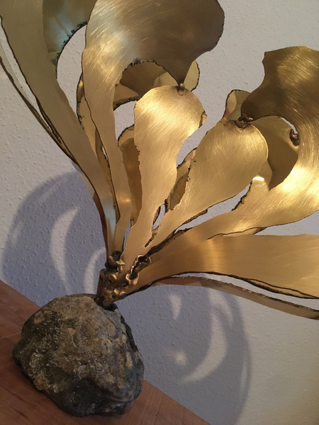 Der kugelförmige Achat symbolisiert die Erdkugel, welche klein erscheint, gegenüber der künstlichen Strahlung.