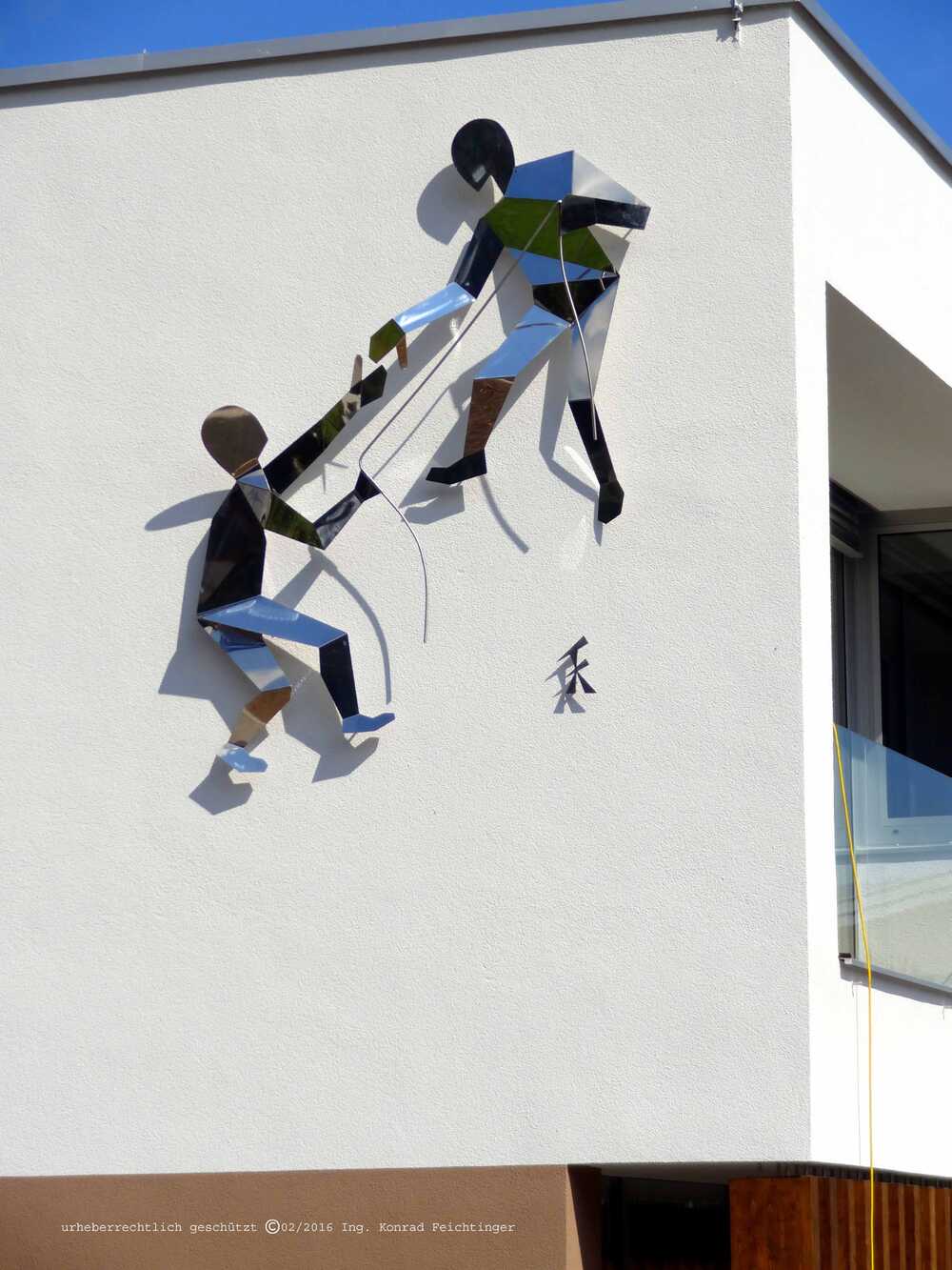 Beim vorbeifahren haucht die erzeugte Spiegelung den Skulpturen Bewegung ein.