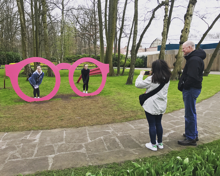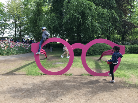 The interaction showed bursts of play, joy, looking through the frame, cleaning our lenses, climbing a larger than life understood object, being a central core for family value and inspiration, and a common ground for friendship. A frame allows us to ponder how we see things around us. Eye glasses are about focus things inside the frame are sharp like a landscape filled with colorful tulips, or a historical royal palace.