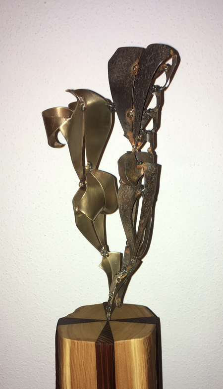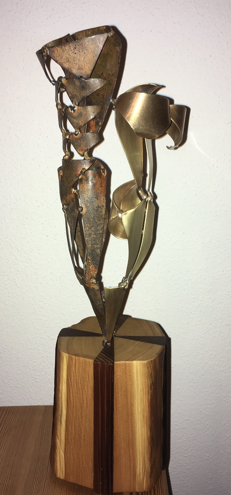 Mann und Frau - Stahl und Bronze auf Lärchenholz.