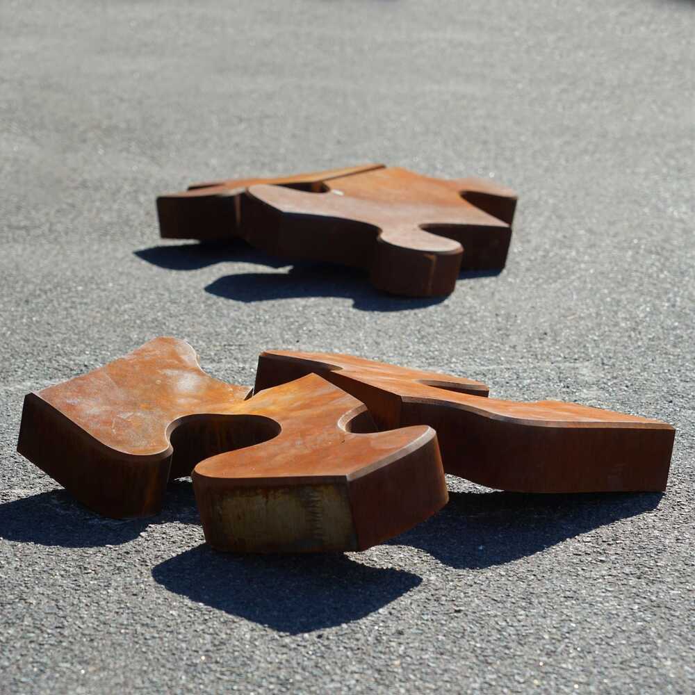 Baustahl Massivplatte, Acetylen Brennschnitt warm gebogen.