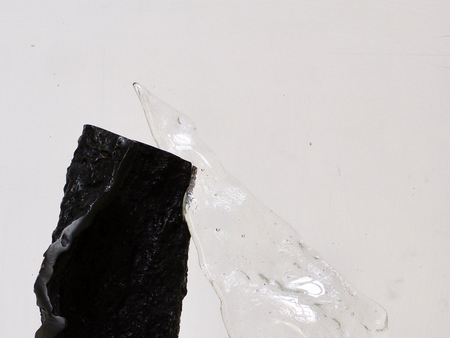 negative/positive imprints of the walls of Roman Catacombs, cast in bronze and in Murano glass. the delicate transparent glass trespasses/penetrates the sturdy bronze. opposites melt together, become one.