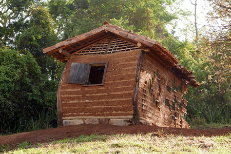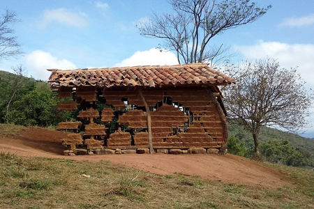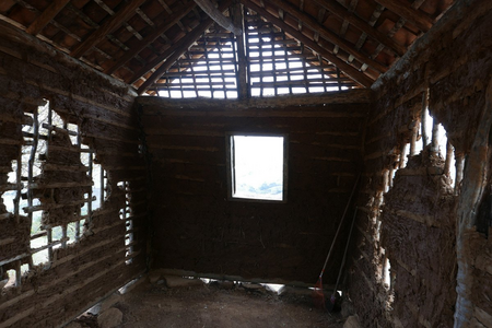 Material: wood, clay soil, straw, cow dung, cement, metal grid, rooftiles