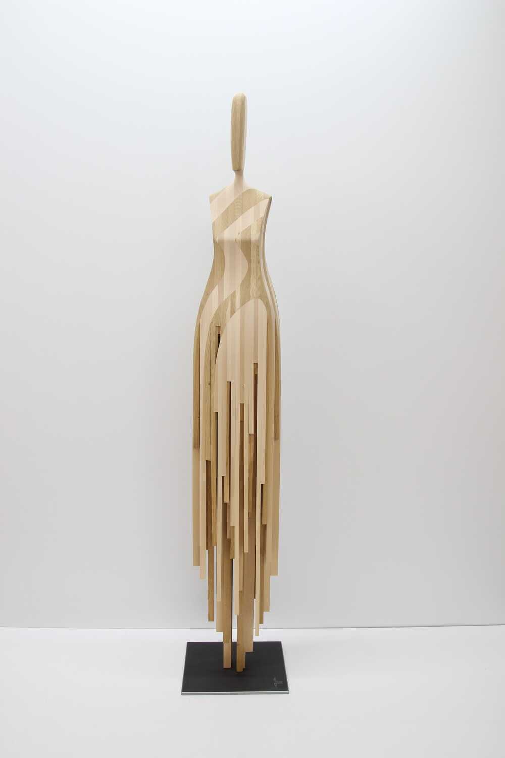 Die Skulptur „human flow ADRASTEA“ entstand durch ein aufwendiges Verfahren aus vielen einzelnen Holzleisten.