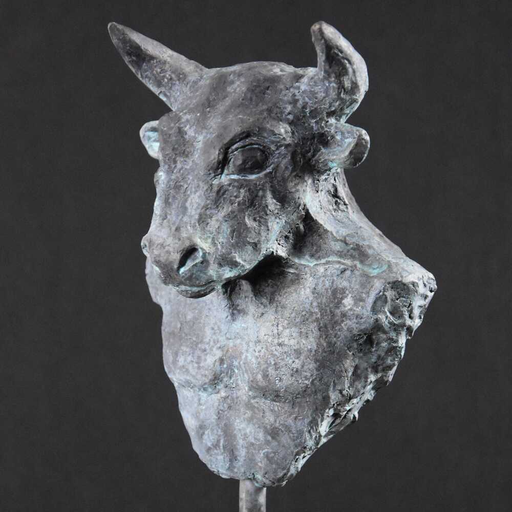The "Minotaur" is cast in bronze and fixed to a pedestal which itself is a residue of the bronze casting process.