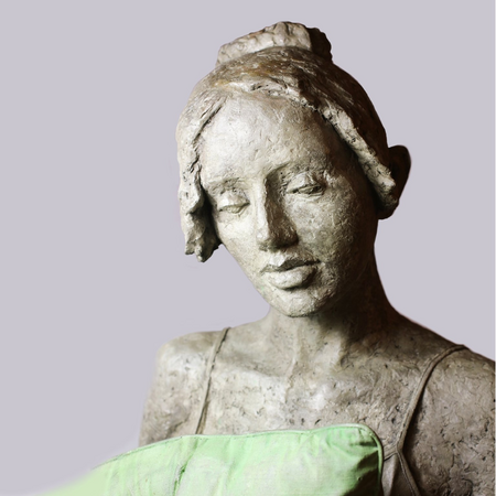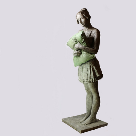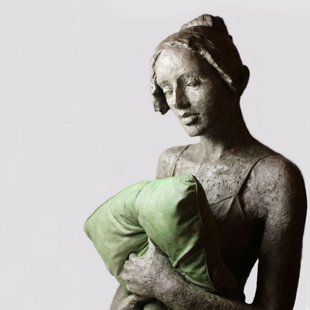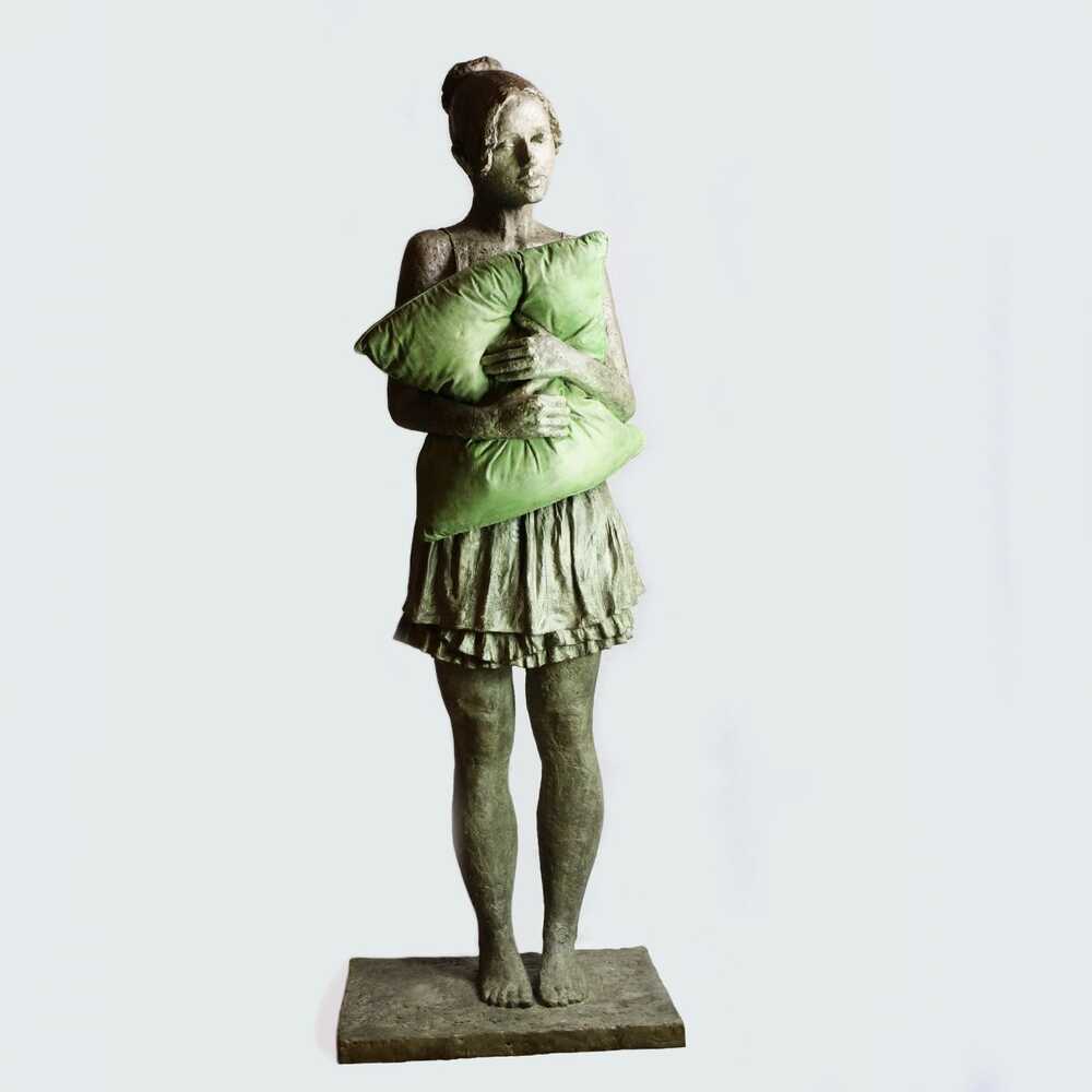 In dieses fortwĂ€hrende Tradieren reiht sich meine Figur mit dem hell-olivgrĂŒnen Kissen, dessen Arbeitstitel âSehnsucht nach Sofaâ war. Die Farbe des Kissens erinnert an antike Samtsofas und an gedeckte GrĂŒntöne der Natur.
