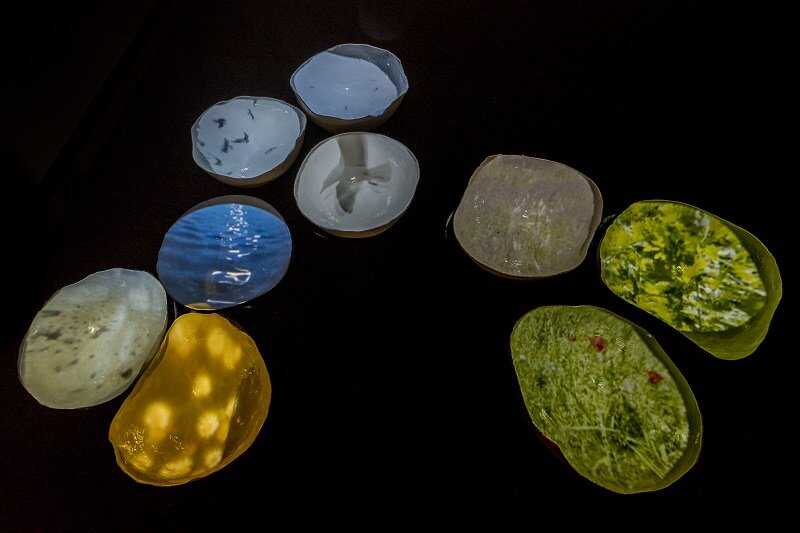 Poetic installation of 9 porcelain bowls (average 40 cm hight 25 cm)with spoken text about our earth, its importance and our experience with it.