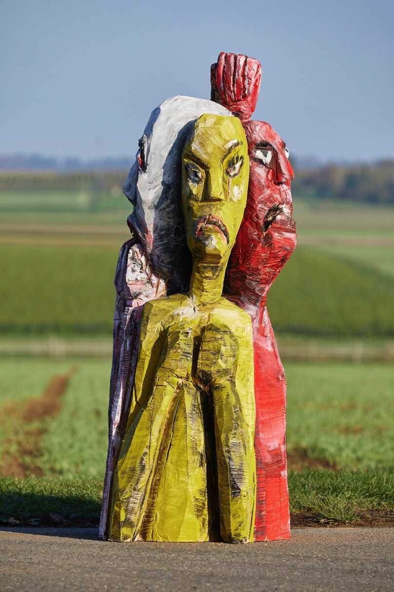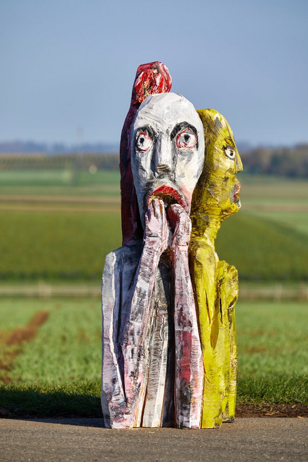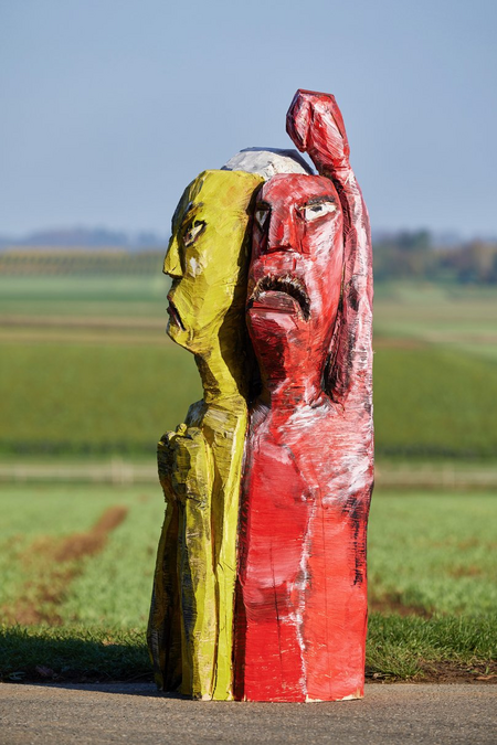 Holzskulptur bemalt.