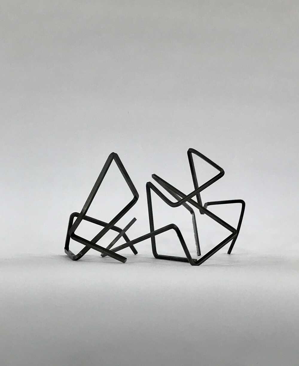 Durch Biegen der Stahlstäbe entstehen Raumlinien, drei Raumlinien ergeben ein Ganzes. Ein Spiel mit Raum und Dimension.