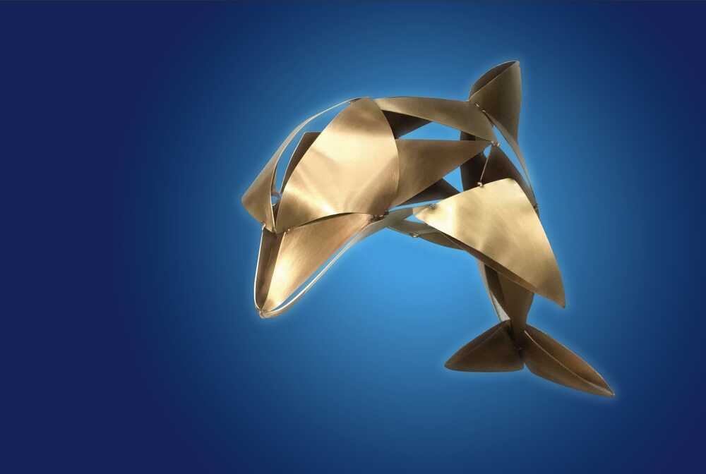 Dolphin made of sheet of bronze on Azul Macaubas.