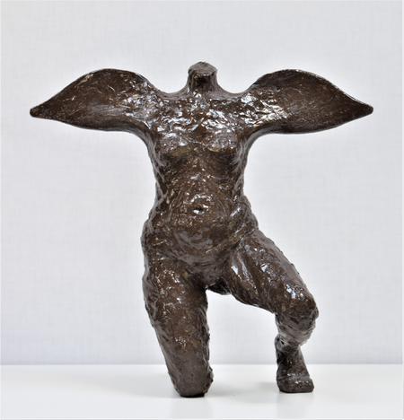 āAbout Freedomā shows a similar sculpture to "Arise, but more powerful. She is powerful brown. The legs are more active and wings are attached to the torso. This woman gets up and spreads her wings. She is powerfully present, but has not yet fully grown.