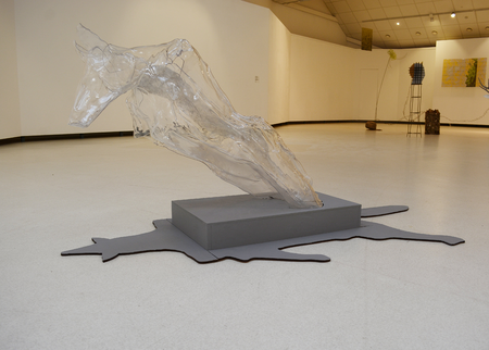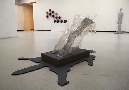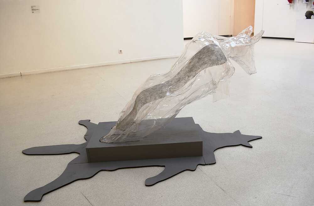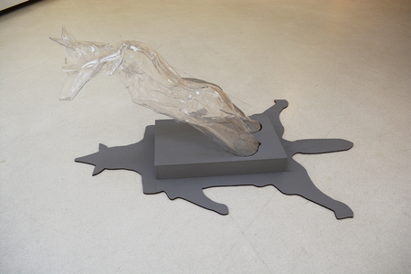 In front of the installation there is a polyester figure called I am a Fox. It is a leaning mannequin figure with the head of a fox, as if trying to replicate the animal's pose. The mannequin, a human model used in clothing, is transformed into a metaphor for the human being himself: by covering itself with the fox's fur, which is like an imprint on its back, the mannequin also turns into a fox, or at least imagines itself in the fox's fur. The mannequin is also an allusion to the catwalks of fashion events, where the skins of farmed animals are used to showcase extravagant models. The catwalks, the artificial spotlights, the camera flashes, the beauty of the shimmering fur, but without the life that had lived in it, are like the next stage of the fox's artificial life cycle – the continuation of the no longer alive, but "beautiful" fur in the sphere of the cultural industries. |
