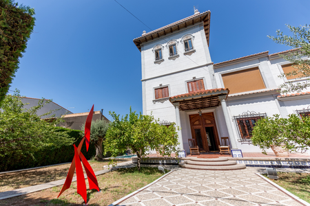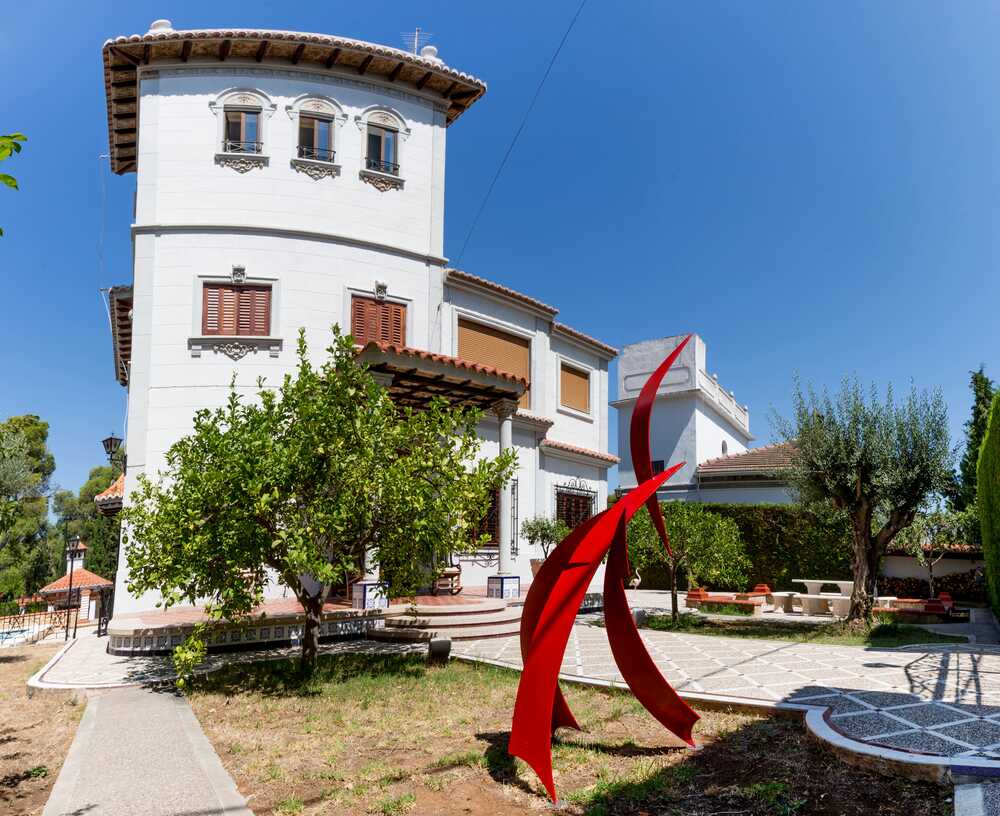 ¿puede una escultura abstracta de vanguardia enriquecer una casa palacio de 1920?, la respuesta es que si, lo podemos comprobar con esta escultura y su ubicación en el jardín de esta hermosa casa palacio. Una muestra de la maravillosa cooperación entre arquitectura y escultura.