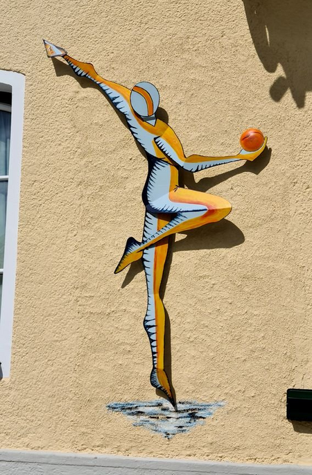 tänzerische Darstellung als Ausdruck der Freude wobei Eva auf die Blüten deutet