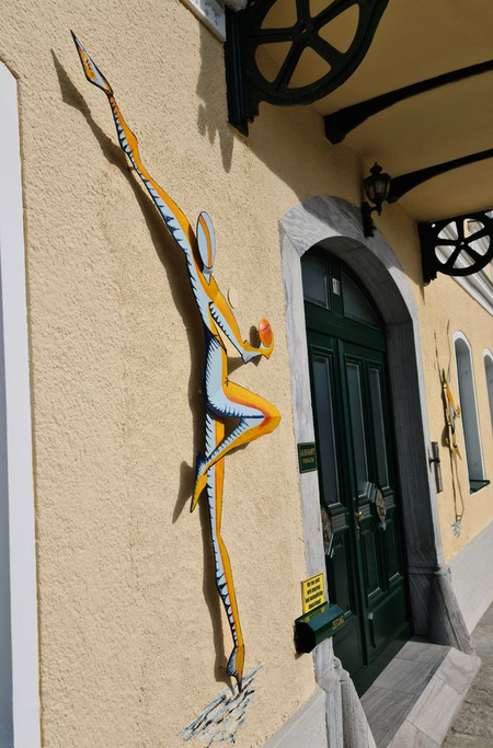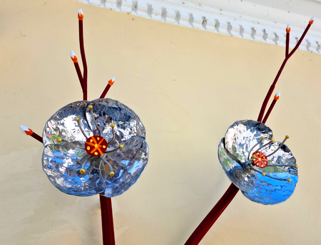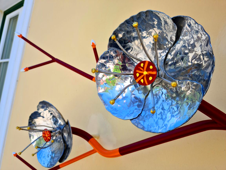 Adam und Eva die Stammeltern der Menschheit rechts und links des Tores gemalt auf CrNi-Stahl, moderne reduzierte Figuralität,