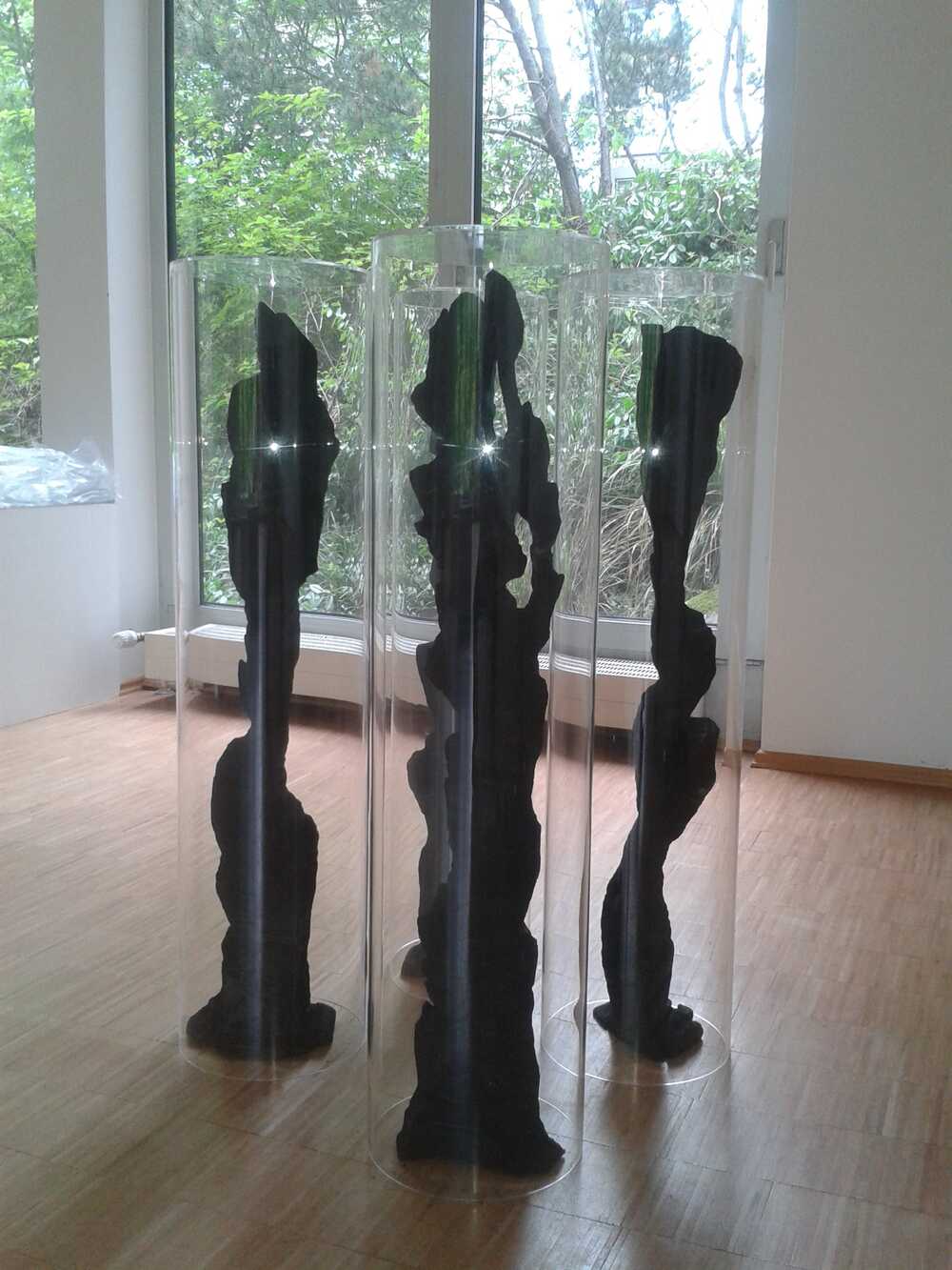 4 mal Eiche verkohlt, Acrylglaszylinder