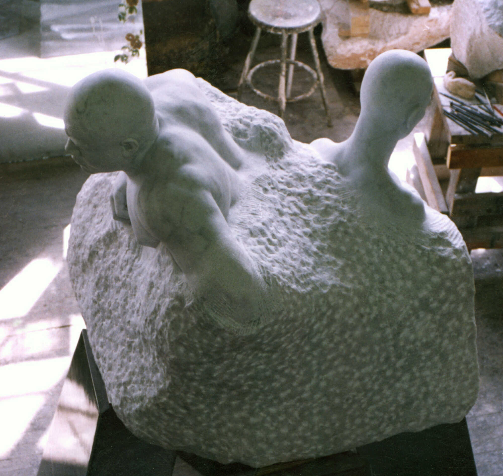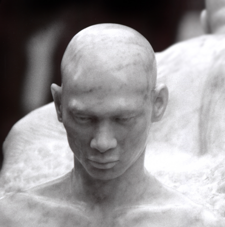 The inspiration for this project originated in June of 1989, as the Chinese government met the pro-democracy movement with repressive action in Tiananmen Square. This brutal silencing of a student congregation became the spark that was to initiate this political statement in marble. Extremely saddened by this event I was also angered that it had stained my thirty-third birthday. The horror that I felt as the news reports reached Western Europe, marked me and left a need to express my outrage. The image that haunted me was a head bowed in surrender and submission, a young Chinese student buried to the neck in political turmoil. The image was quite clear, however, it remained unfinished in my mind and any attempt to realize this work eluded me.