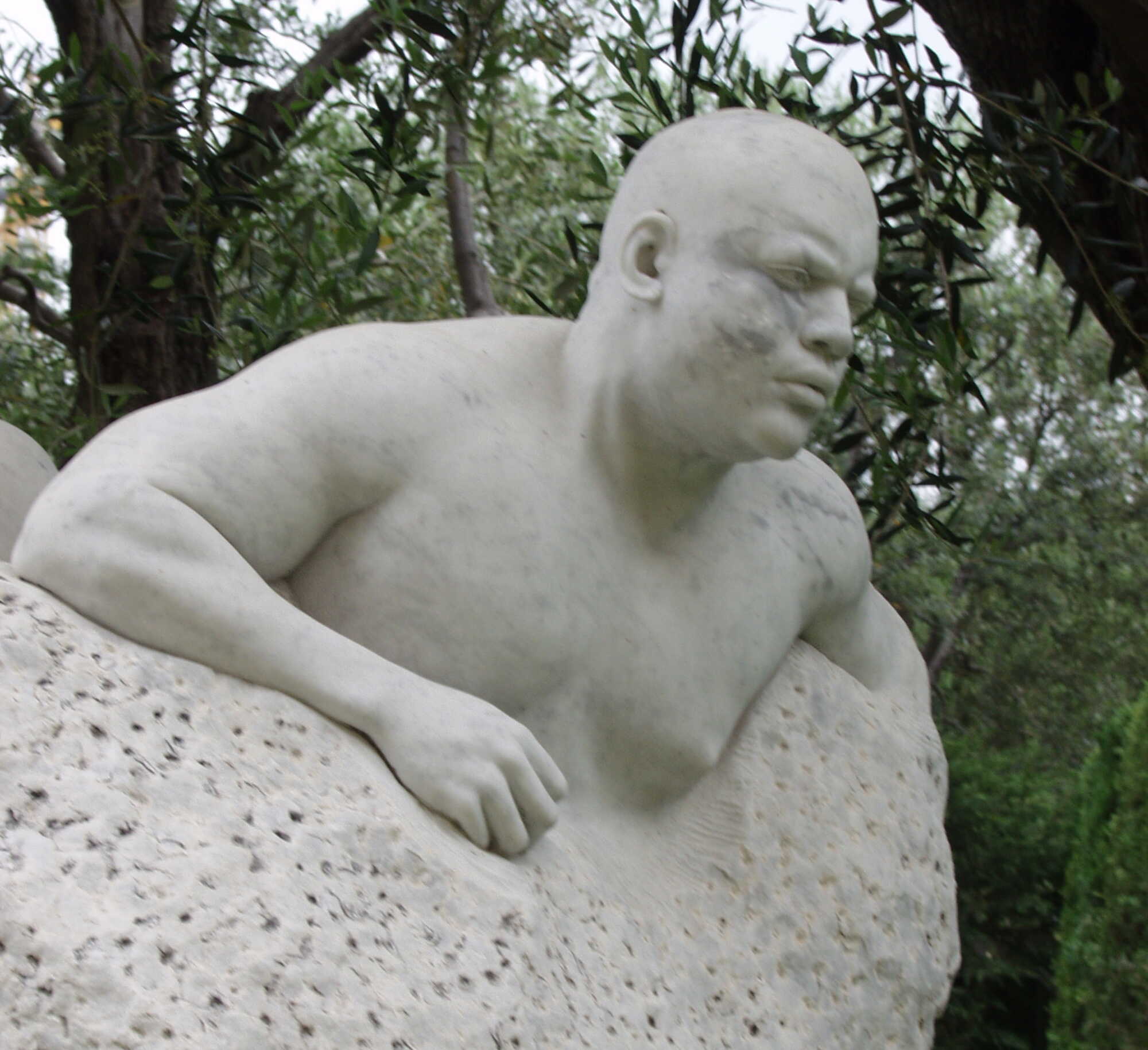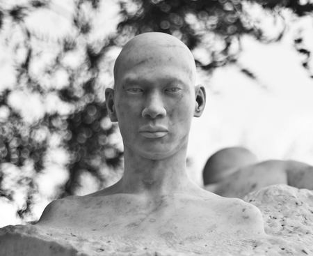 Publicly displayed in Monaco, this sculpture has evoked conflicting emotions; once a swastika was pencilled on the marble. It's significance can be understood in many different ways, however, after I had washed off the graffiti, I thought that perhaps I had silenced a voice and the work was less complete as a result. At another time, the work was subject to physical attack and the face of the African shows the marks of some twenty blows that struck and chipped the surface of the portrait. Rather than thinking of the sculpture as now being flawed, I wished to view this disfigurement as in some way confirming the essence of the democratic process: A voice for all who care to speak.