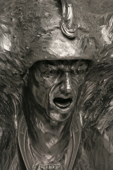 The incongruously pagan nature of these cathartic creatures, found on early Christian churches and palazzos in Europe, impressed the artist at a young age and were among the first works to mark the artist’s interest in mythological themes. These powerful life-size portraits are meant to depict some of the mythological creatures that may guard the passage to Hades. The word Gargoyle is thought to have evolved from the Gorgons, who were found before the entrance to the underworld and accompanied Grief and Anxiety, along with Diseases and Old Age, Fear, Hunger, Death and Agony.
