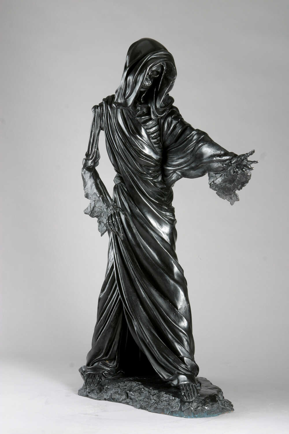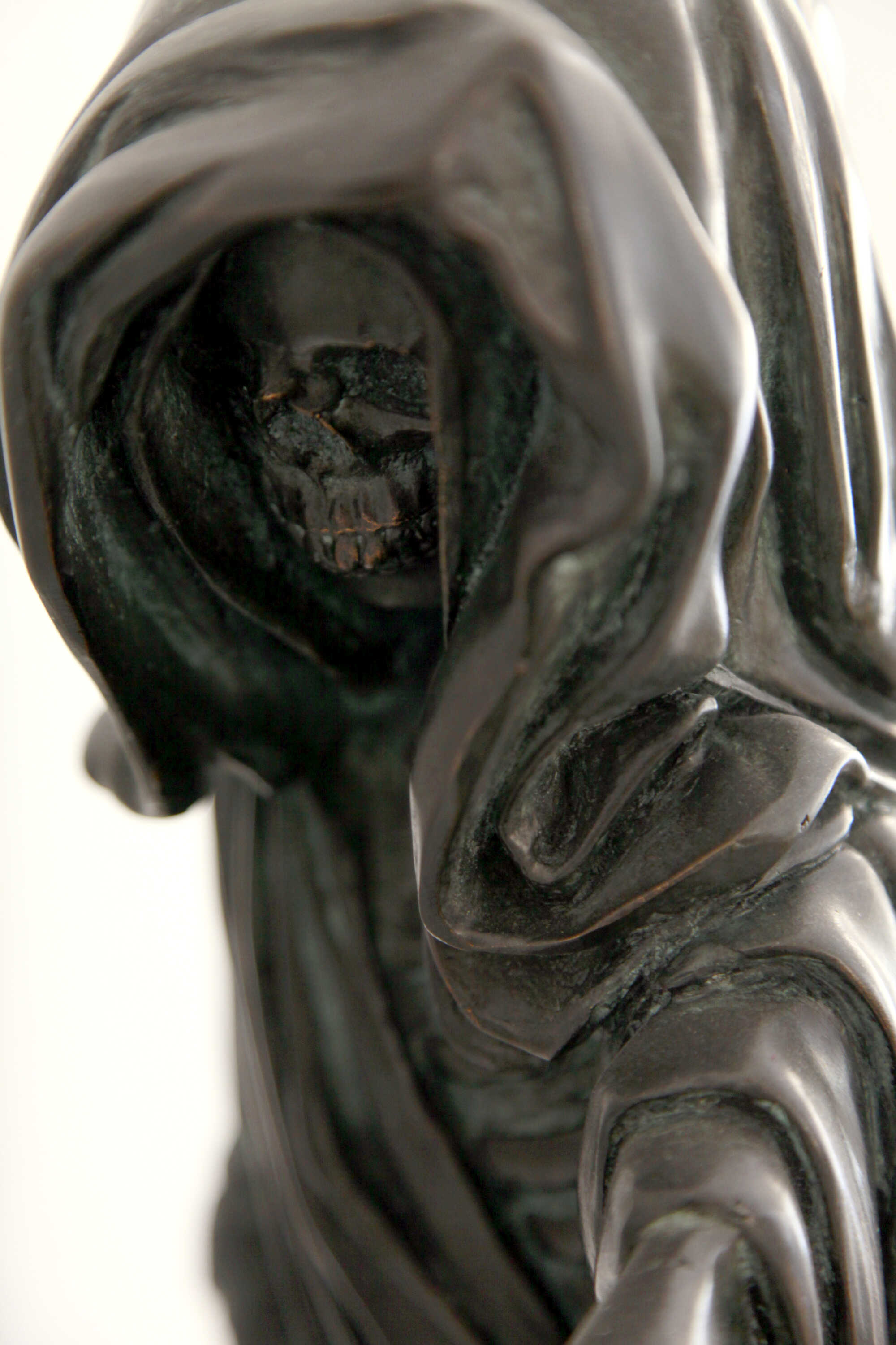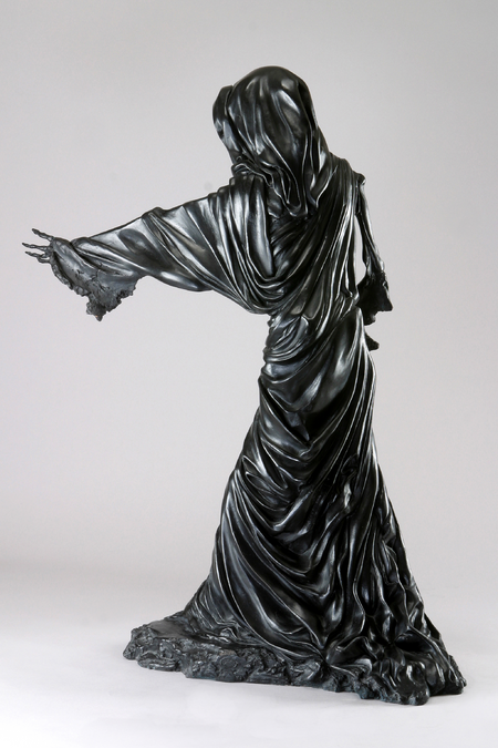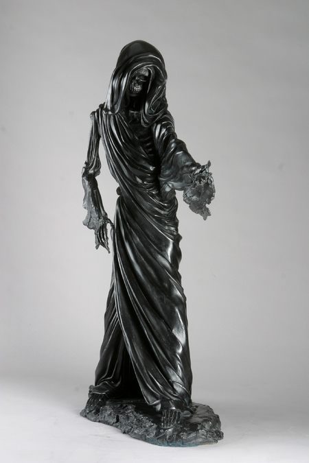 The Fates were thought to predate the gods, and that their powers might extend to control the fate of the gods as well. The drapery that covers this work is a tribute to this idea, with the Death collecting the threads of each life and thus creating the long elegant flowing drapery that covers her.