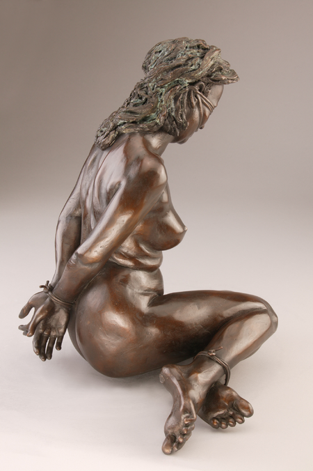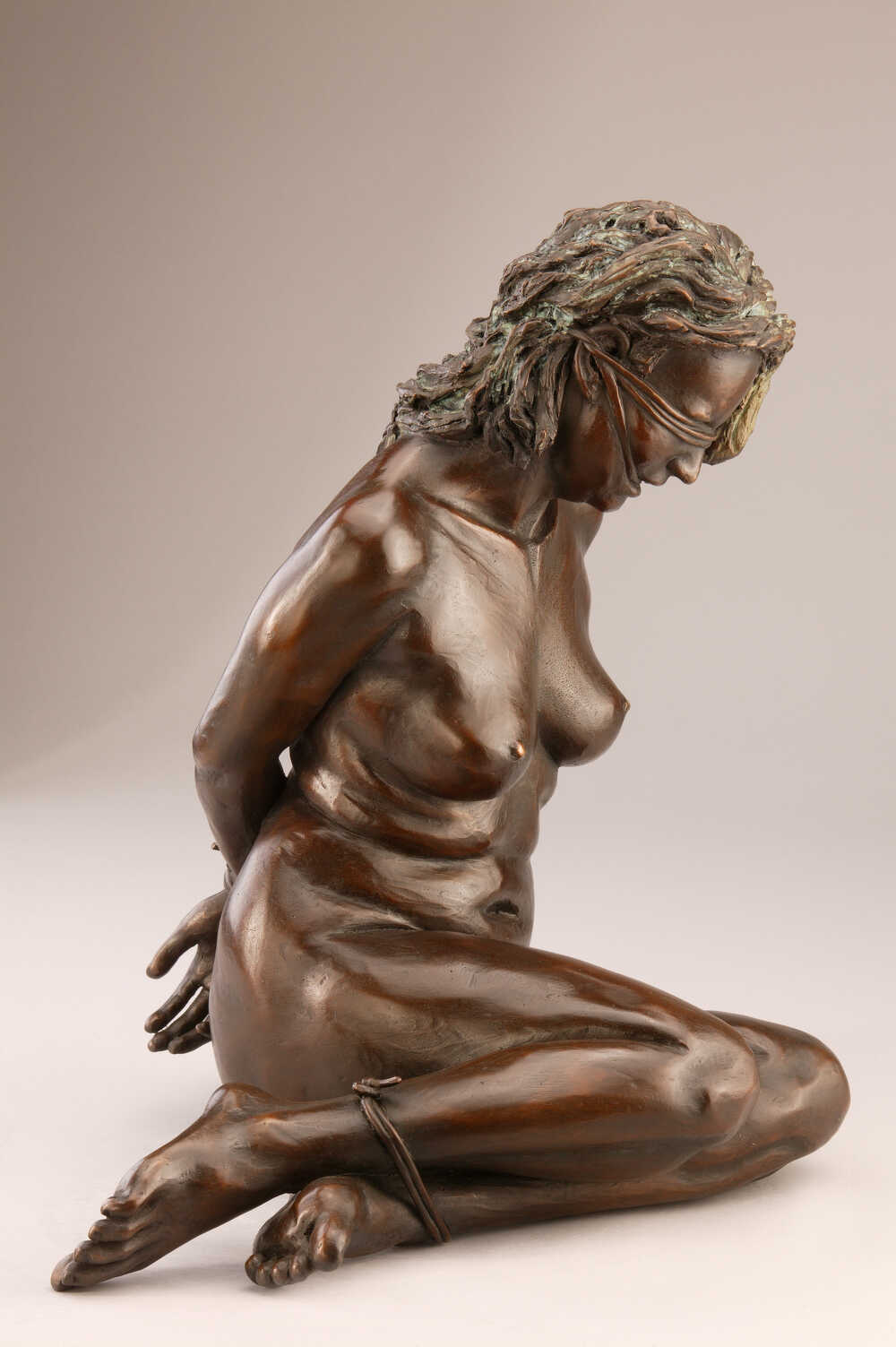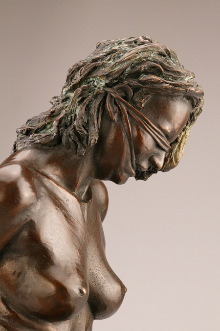 This sculpture depicts the image of Justice as she was gaged and bound through legislation relating to this Act.