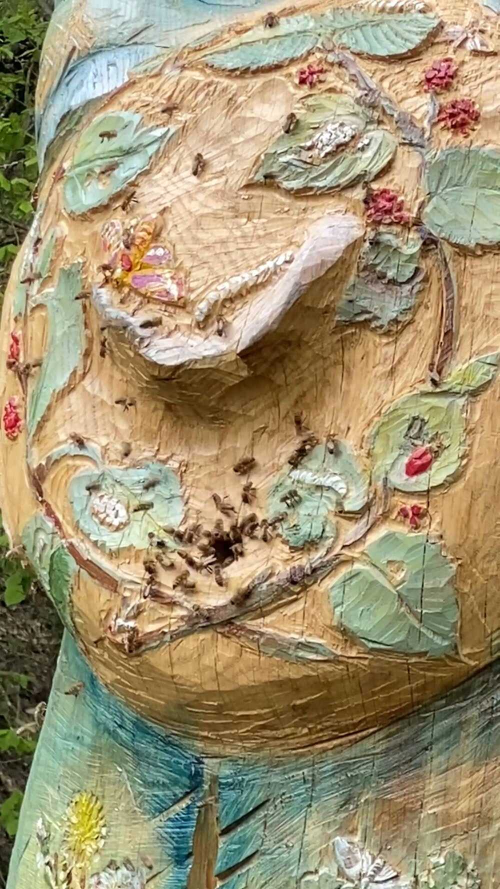 Bees in art, that's nothing new. Since 17/18. Centuries we have these guardian figures. Back then to protect the honey, today to show even more: we are nature, without ifs and buts. Personalities who lead us on this path are reminded to us again as behivesculptures, with life in there stomach.