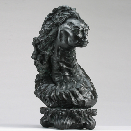 This sculptural work depicts the metamorphosis of Medusa in four stages as she turned from woman to monster. Beginning with a conventional image of a handsome woman, whose hair is adorned with snakes, as described in the early myths. The serpents around her gradually become less abundant as she absorbs them into her changing persona.