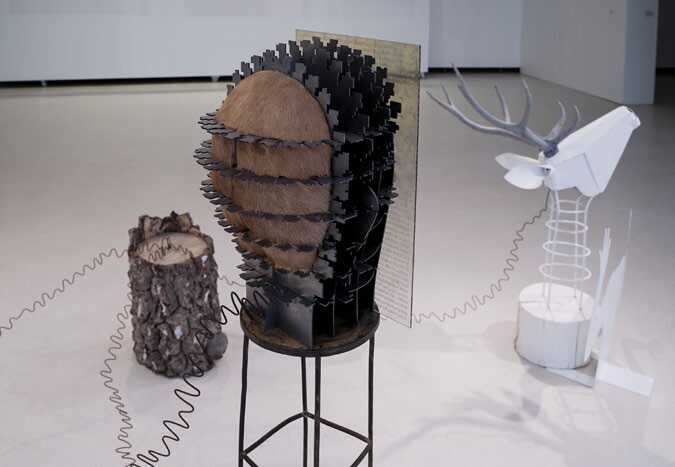 2017–2021, metal, plexiglass, fur, QR code motifs; photo of a