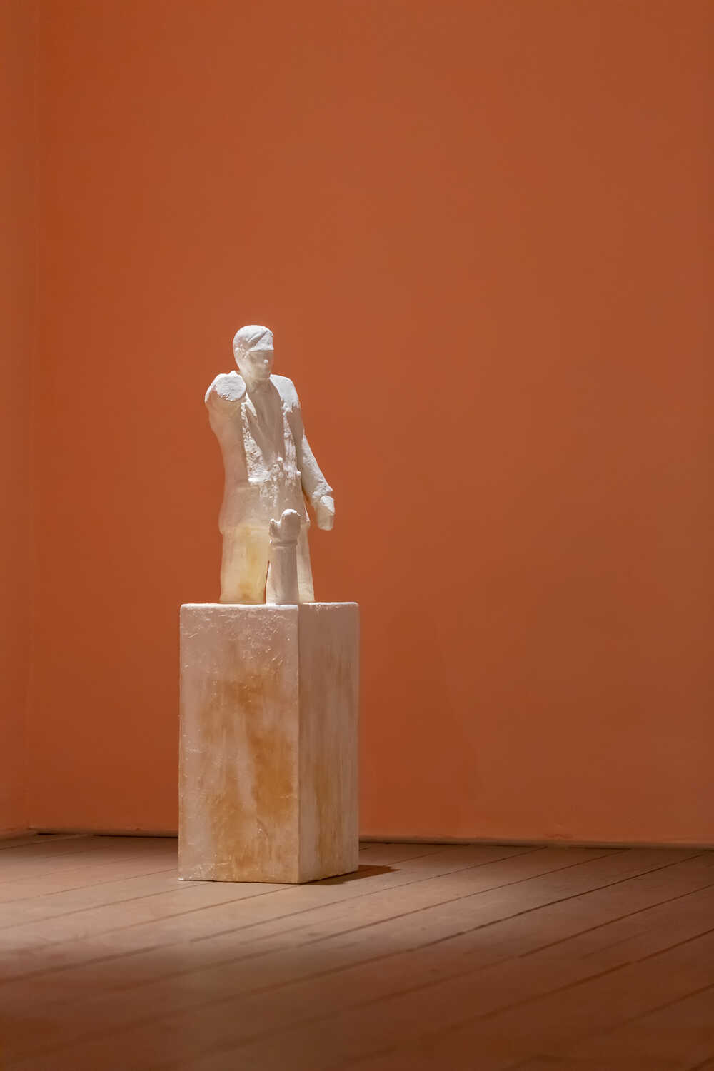 The predominantly monochromatic white sculptures show, in essence, an expressive simplicity, they nonetheless bear an extraordinary air of significance. The works achieved their current form through the artist’s development from more colourful, epic scenes through the harmonizing of traditional sculptural motifs to their present “OFF white” format of material and thematic reductions. The character of the works can evoke the sensation of almost overwhelming frankness, but this allows us to pinpoint them with a degree of certainty and subsequently auto-interpret their multiple layering within a psychological framework based on lived experience. The viewer becomes an observer of human destiny, perhaps helping them to understand their own fates.