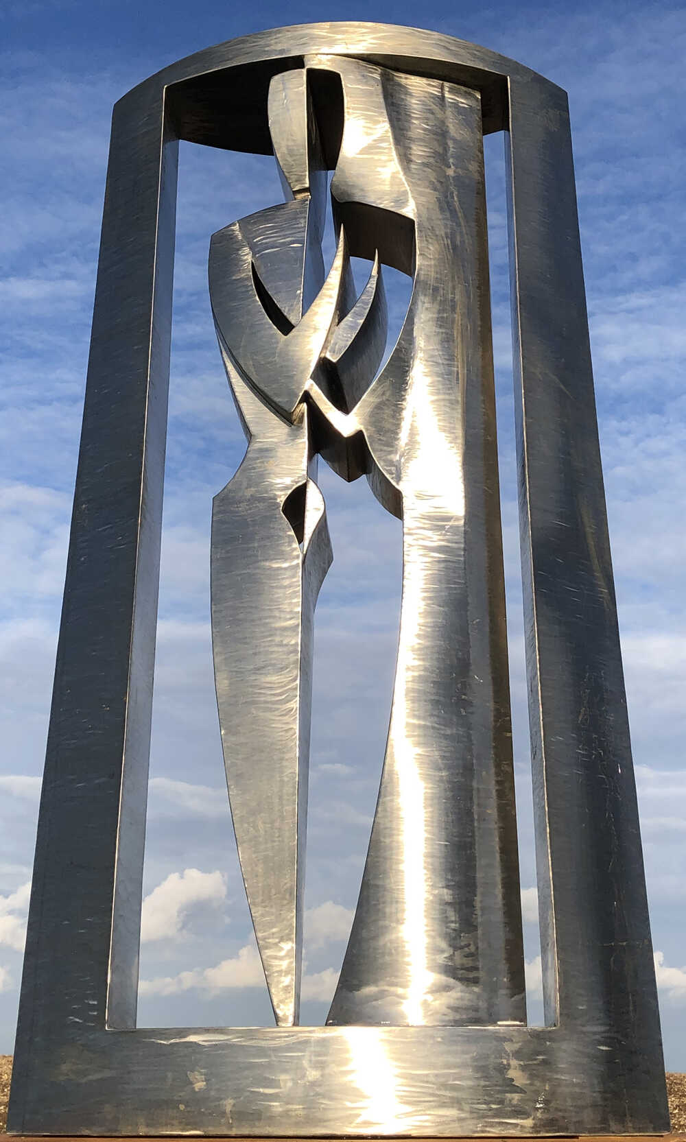 The singular figure is half dark and half light in the ever changing light of day and night. Just like me with impenetrable and hard and transparent and light sides.