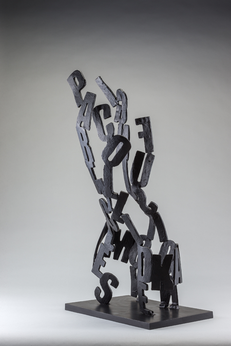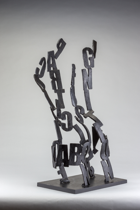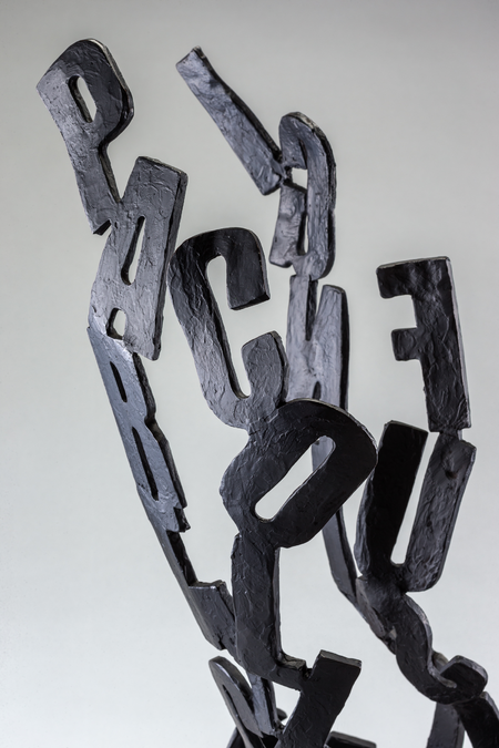 The male torso embodies the human form and serves as a canvas for the poetic narrative inscribed upon it. The words, woven into the bronze, initiate a story that bridges the scientific and emotional realms.