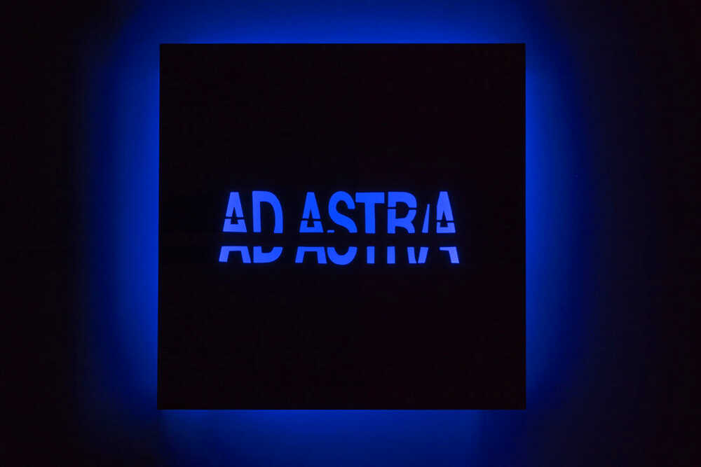 The sculpture features the words "AD ASTRA" cut into its form, illuminated from within. "Ad Astra," a Latin phrase meaning "to the stars," is laden with a sense of aspiration and hope. However, within the context of this piece, it acquires a deeper layer of meaning. It becomes a reminder that our journey "to the stars" and our pursuit of technological advancement must not blind us to the ecological realities we face here on Earth. The light emerging from these words symbolizes the enlightenment and potential for positive change that lies within our grasp.