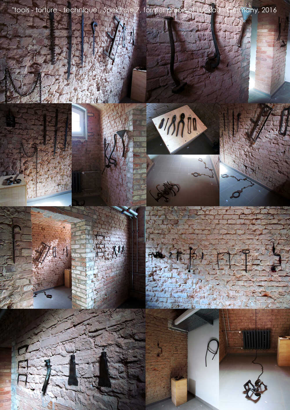 This installation of the exhibition "Spektrale 7" in the former prison of Luckau is about the museum-like presentation arrangement and perception of originally harmless everyday objects and tools that lose their "innocence" through their staging and also their potential abuse.