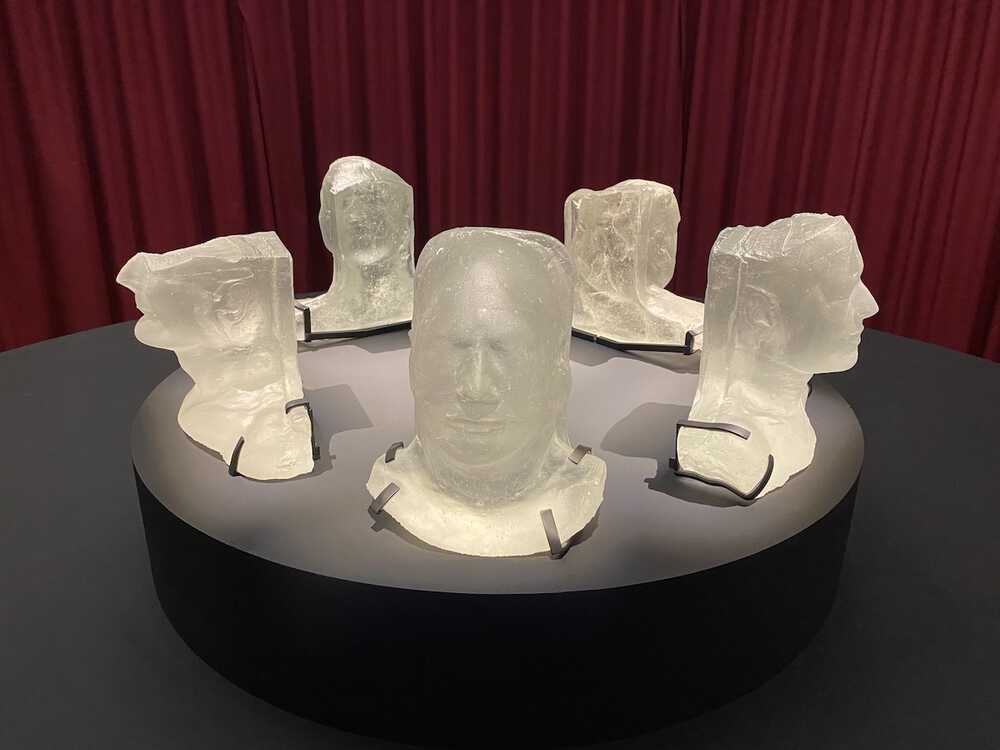 Silent Stories are a series of glass busts, created from the plaster casts used to make the clear shells worn by patients during Radiotherapy.