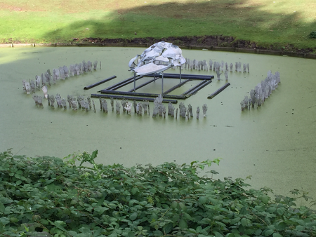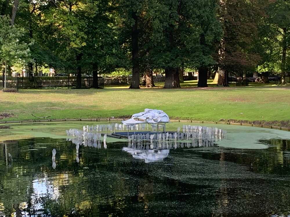 In between, my silent performer lies in the water: the ghost of Hildebrand. His image reflects in the water. his memory, today's story, reflecting on today,… for which a circle of his audience clap. It provides food for thought.