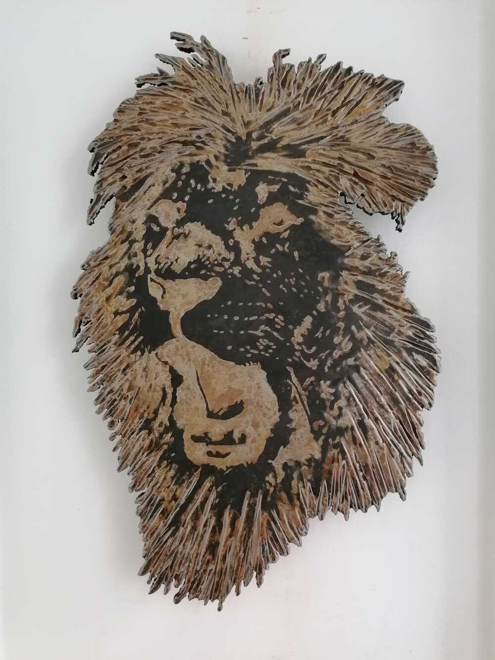 A Lionhead cut out from Steel