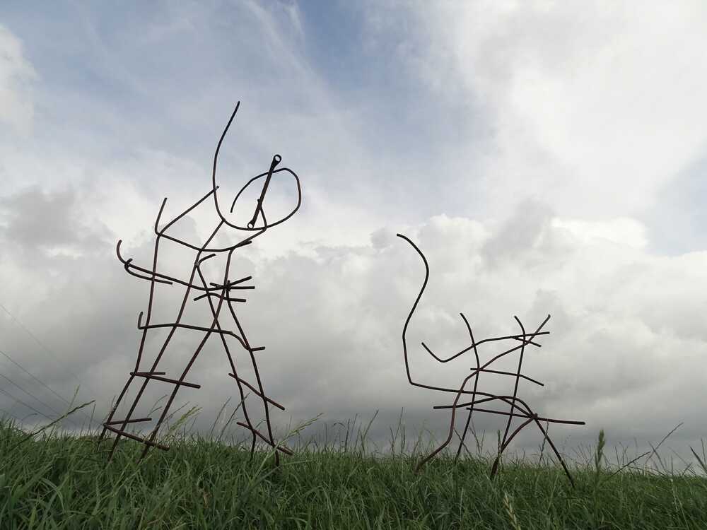 Installation with two elements, made out of discarded concrete iron, welded by brother-in-law Jozef.