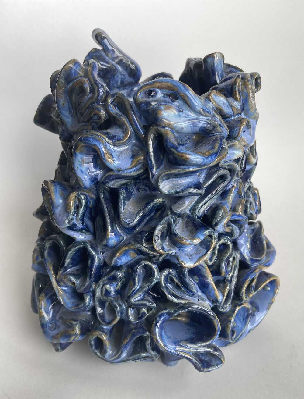 In the depths of the ocean, where light is scarce and the pressure is immense, there exists a mysterious coral reef unlike any other. This clay vase was fired at 1250 degrees
