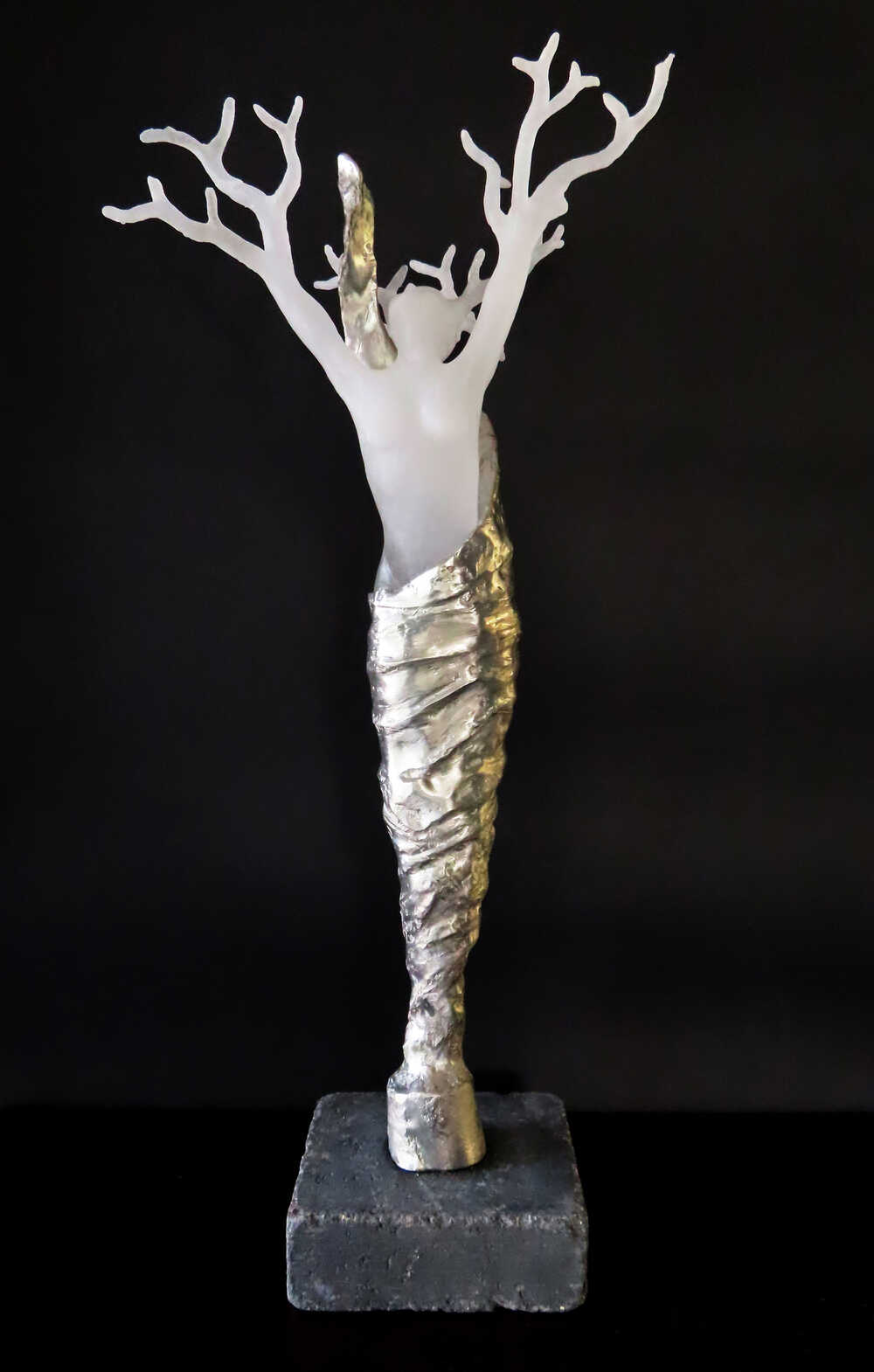 The wave propels the woman upward. This energy from nature makes the woman turn into a tree of life.