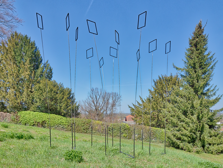 Moving Sculpture - Installation aus 12 schwebenden Quadtraten.