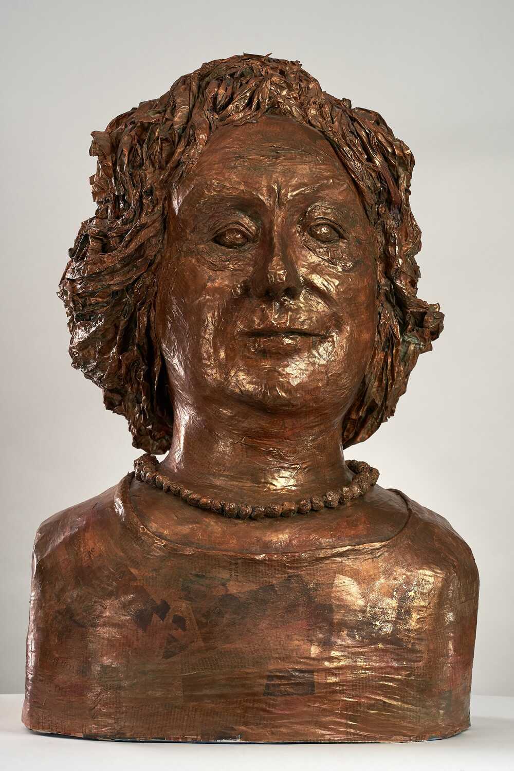„Content“ represents an old woman that looks like a sculpture made of copper from a distance. The newspaper’s print shimmers here only on closer inspection. The woman thinks she knows what she knows and what she wants. She is totally satisfied with what she has got. But what is actually there under the metal coloring?