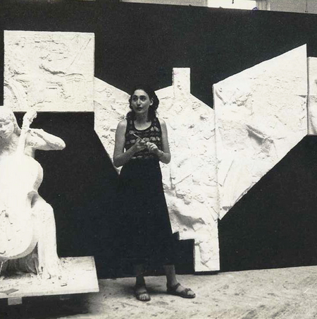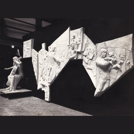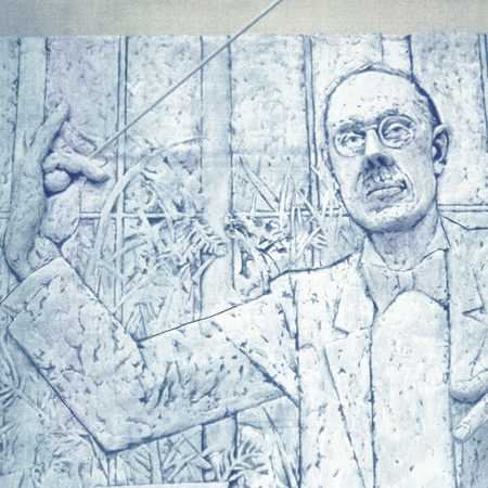 Diane made this 445cm long plaster relief sculpture after long hours drawing the orchestra in their many rehearsals, and during some of their performances. At the time she was an art student specialising in sculpture in the Environmental Design Department at Bournemouth and Poole College of Art, on the Public Art Course which taught students to make art for public sites. After this relief sculpture was bought and sited, two more commissions came from the BSO to commemorate previous conductors of the orchestra – a bronze of Constantin Silvestri and a concrete relief of Sir Dan Godfrey.